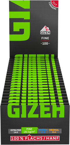 GIZEH BLACK Fine ist das bevorzugte Papier für anspruchsvolle Momente. Mit nur 18,5 g/m² Flächengewicht bietet dieses feine Blättchen maximale Eleganz. Die natürliche Gummierung aus echtem Gummiarabikum vom Akazienbaum garantiert authentische Qualität. Aus 100 Prozent Flachs und Hanf gefertigt, ermöglicht es einen reinen Geschmack. Die Cut Corners (Eckenabschnitt) erleichtern das präzise Drehen, während die langsame Abbrandgeschwindigkeit den Genuss verlängert. Ein zeitloser Klassiker für Kenner.