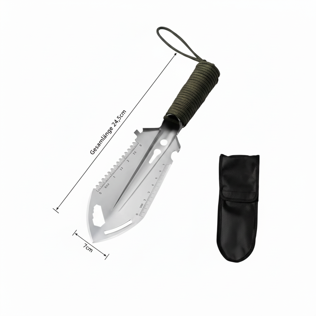 Die Survival & Outdoor Multifunktions-Schaufel ist mehr als nur ein Grabwerkzeug – sie ist dein zuverlässiger Begleiter in der Natur. Kompakt, robust und vielseitig einsetzbar, meistert sie jede Herausforderung, ob beim Camping, Wandern, im Garten oder in Notfallsituationen.